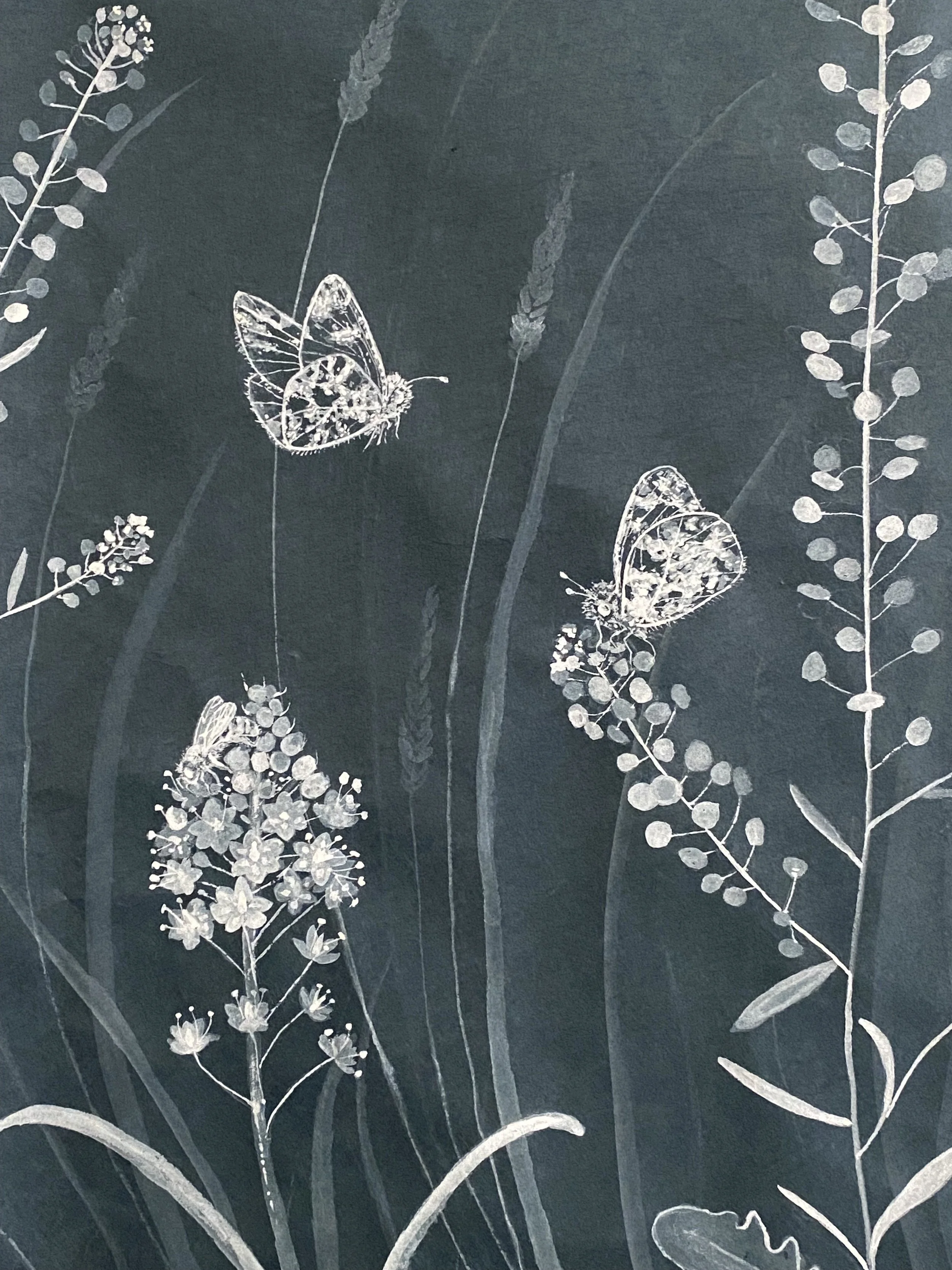 The process of creating my work begins with an interest in a specific environmental niche or organism or a unique material such as hemlock root that's become visible from erosion. I then go deep into research––research into an ecosystem or flora or fauna, and research into my material of interest and its historical uses. In my work, I tend to be detail oriented, focusing on not only the overall composition but the minute details of subjects such as petals and fish scales––I believe that those details hold worlds of their own. Many species go unnoticed, many native plants are treated as weeds and many native insects are treated as pests––but, they hold such beauty and importance to the environment.
